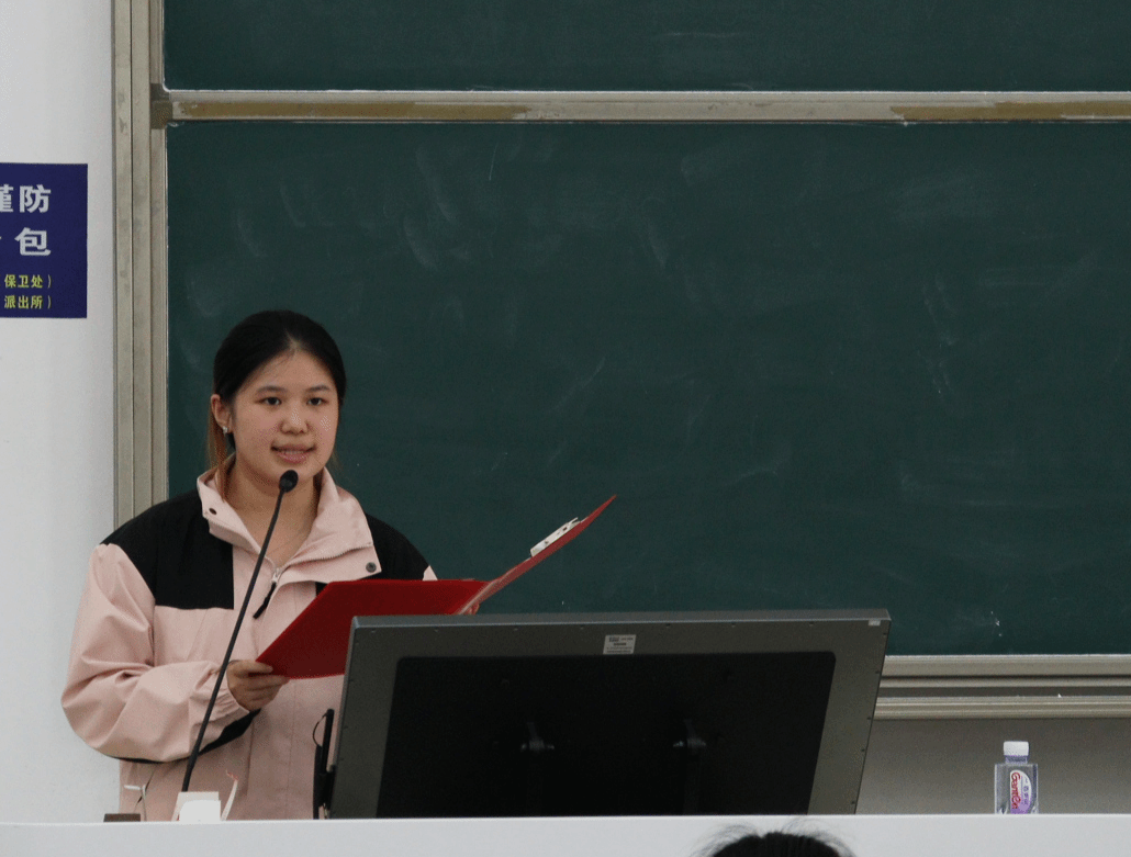 活动第一项,全体成员起立,共唱国歌。物院学生会主席庞佳佳就团学组织架构与活动分工进行说明。为确保团学工作高效落实,她指出,各部门负责人接到任务后要明确工作方案,跟进工作进度,工作人员需及时反馈、严守工作底线。