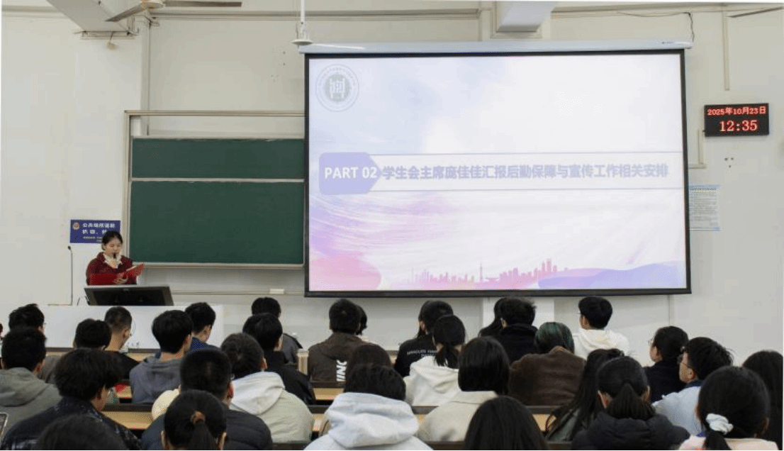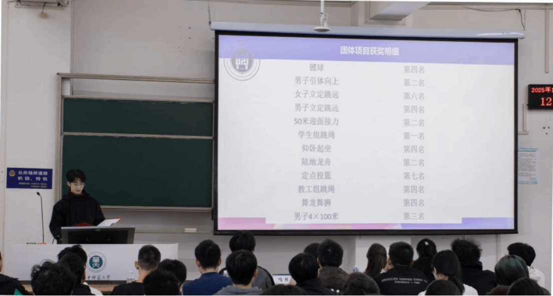 华大青年讯(通讯员 袁祥阁 李怡霏)为积极备战即将到来的校运会,激发运动员的拼搏热情,10月23日中午,物理科学与技术学院(以下简称“物理学院”)在九号楼9401教室举行了2025年校运会动员大会。物理学院党委副书记马英、团委书记舒佳欣、团委副书记王润浩,2025级辅导员刘琦等领导、老师与各位运动员共同参与了此次大会。大会由2025级本科生邹琳璇主持。