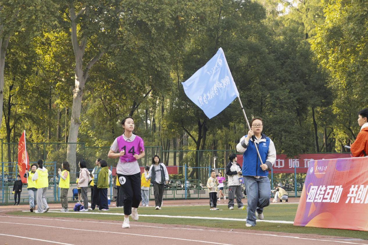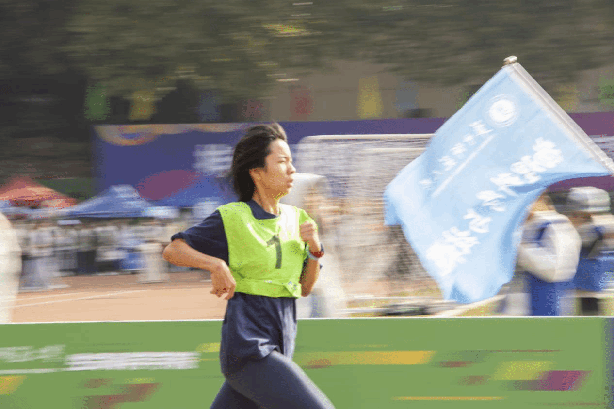 赛道旁,物院的陪跑志愿者们同样引人注目,他们陪着运动员坚持下每一圈,手中的蓝色的物院旗帜剧烈挥舞,与选手的步伐同频共振;看台上,物院师生组成的“加油团”更是点燃了全场激情,“物院加油!”的呐喊声穿透赛场,汇成激昂的助威浪潮。最后的400米,运动员们全力以赴,向终点发起冲刺。一圈接一圈的坚持,凝聚着不服输的韧劲;冲过终点的瞬间,定格成最动人的画面。此刻,她们收获的不只是成绩,更是坚持到底的感动。这份用行动诠释的体育精神,让所有人看到了坚持的力量,也照亮了每一个为目标奋斗的人!