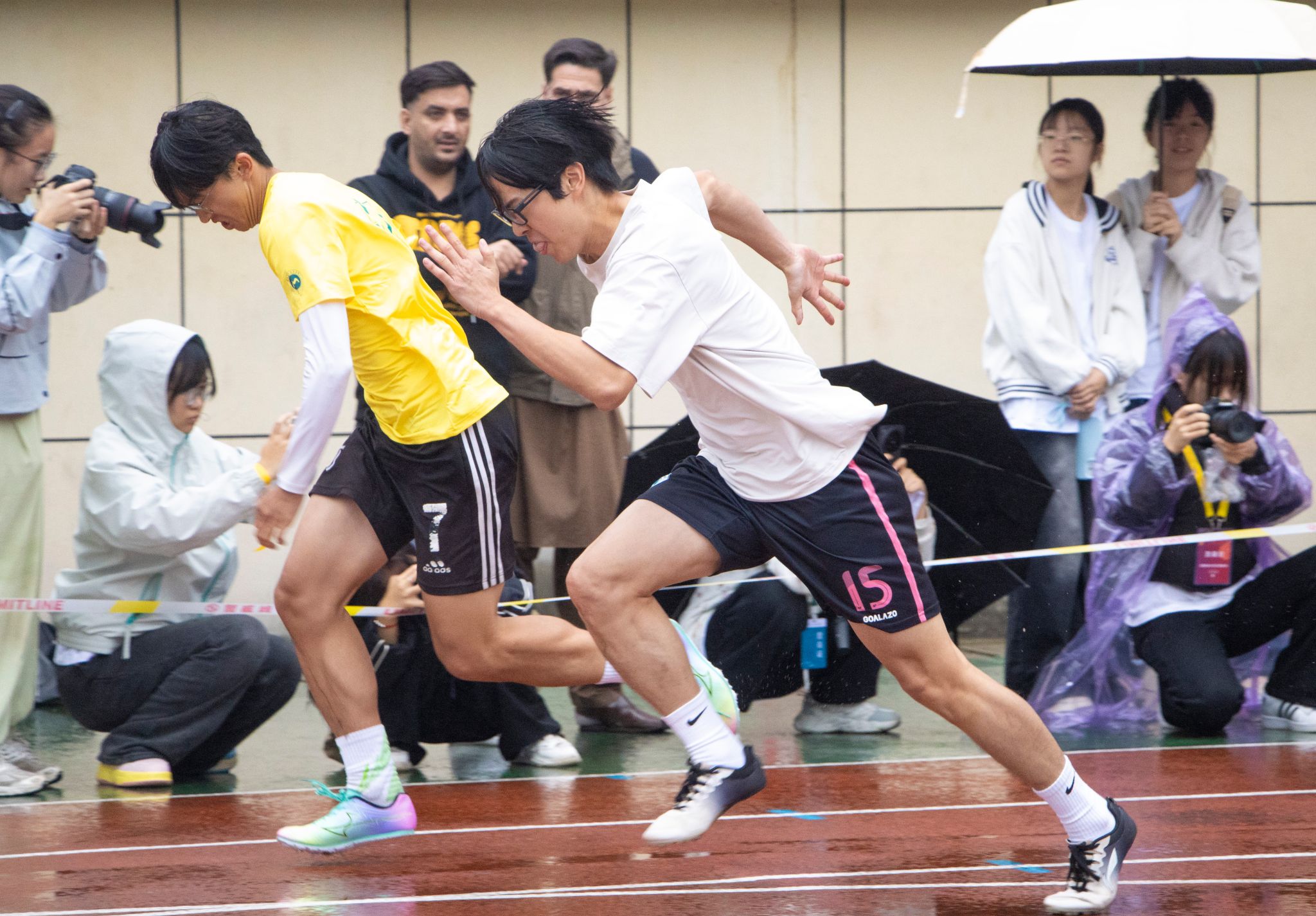 以科学训练为根基,兼顾积累与专业。谈及日常训练,兰吉星分享了“两条腿走路”的策略:一方面,他长期坚持健身和踢球,不断提升身体素质;另一方面,入选参赛名单后,他主动向短跑专项朋友请教,针对性加强爆发力与力量训练。此外,物院还特邀体育学院教练为其调整技术动作,帮助他高效提升、少走弯路。