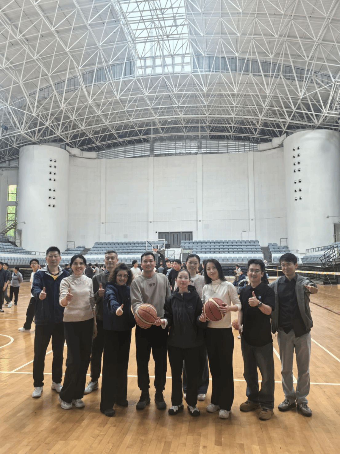 定点投篮比赛中,物院参赛教职工神情专注,依次规范完成站定、抬臂、屈腕等动作;若出现投篮手感欠佳或动作衔接稍滞的情况,他们便及时调整状态,力求动作稳定连贯。最终,物院教工代表队与外国语学院并列该项目第五名。