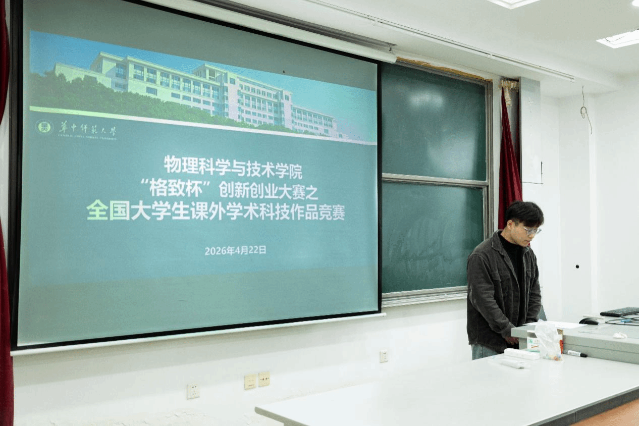 华大青年讯(通讯员 袁祥阁 陈宣妤)4月22日,物理科学与技术学院(以下简称“物院”)“格致杯”创新创业大赛之全国大学生课外学术科技作品竞赛助推计划答辩会在九号楼1229报告厅举行。物院教师刘阿强、王棣以及曾获挑战杯国赛二等奖的李重阳、曾获三等奖的周绮智担任本次答辩会评委。本次答辩涵盖自然科学类学术论文、科技发明制作及哲学社会科学类社会调查报告三个类别,共8个项目参与展示。