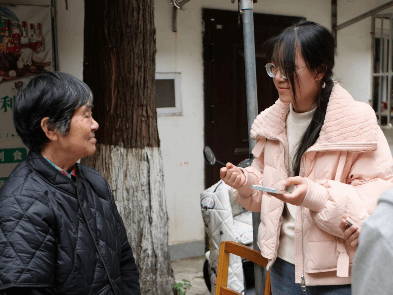 志愿者们在居民区分组寻找老年人的身影,一对一上前询问情况、提供帮助。服务过程既有知识讲解,又有实践操作,志愿者们耐心指导老人们操作手机,开启陌生来电拦截功能,设置紧急联系人,并现场模拟诈骗话术,引导老人们运用所学知识进行判断与应对。在耐心仔细的指导与示范下,老人们关掉了以往手机中难以退出的广告页面,学会了如何设置防诈骗系统,脸上露出了幸福的笑容。