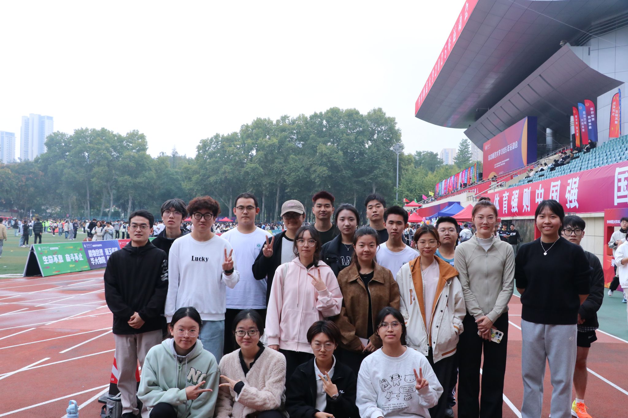 华大青年讯(通讯员 肖荷)10月30日下午,华中师范大学校运动会50米迎面接力预决赛在佑铭体育场开展。彭宽、顾晋荣等20名同学代表马克思主义学院(以下简称“马院”)参加50米迎面接力。