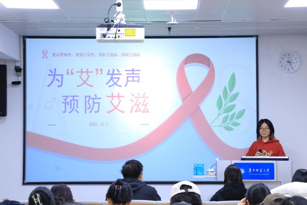 华大青年讯(通讯员 肖荷)12月8日下午,“有爱青春,无艾校园”防艾科普活动在W333教室开展。本次活动由马克思主义学院(以下简称“马院”)团委、学生会青年志愿者协会(以下简称“青协”)主办,马院青协成员李环担任活动主持人。