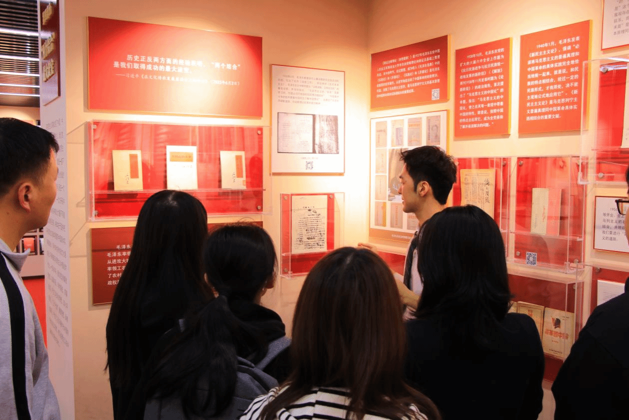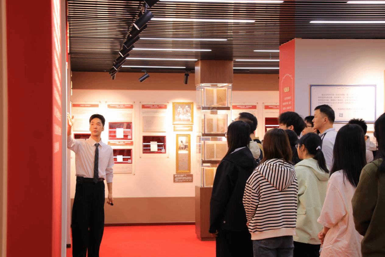 文献典藏展参观环节中,同学们在讲解员的引导下有序观展,近距离接触各类马克思主义文献典藏资料,细致了解文献背景、版本流变与历史价值。大家驻足细读、交流思考,在一页页文献、一件件藏品中追溯马克思主义理论的发展脉络,直观感受经典著作的思想深度与历史厚度,完成了一次沉浸式的专业学习。