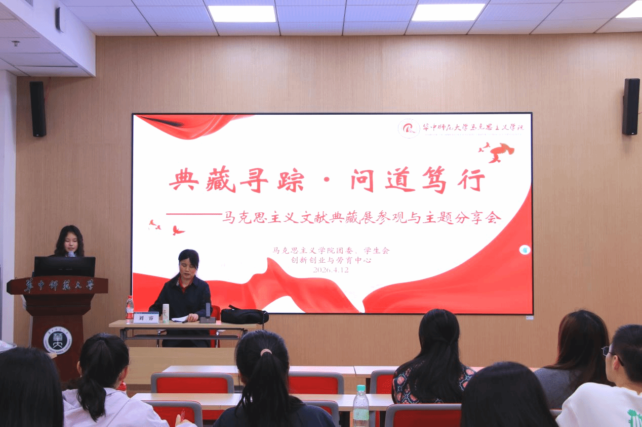 华大青年讯(通讯员 李江彤)4月12日,华中师范大学马克思主义学院(以下简称“马院”)“典藏寻踪・问道笃行”马克思主义文献典藏展参观与主题分享会在文科科研楼顺利开展。本次活动由马院团委、学生会创新创业与劳育中心主办,同学们广泛参与,在文献参观与理论分享中感悟经典魅力、汲取思想力量。