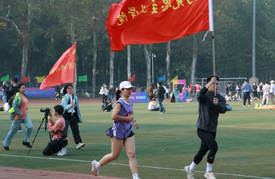比赛过程中,观众们的加油声此起彼伏。跑道旁,同学们挥舞着彩旗,陪同选手跑完5000米,为选手们加油助威。马院健儿们用顽强的毅力,诠释着体育精神的内涵,坚持完成了自己的比赛。