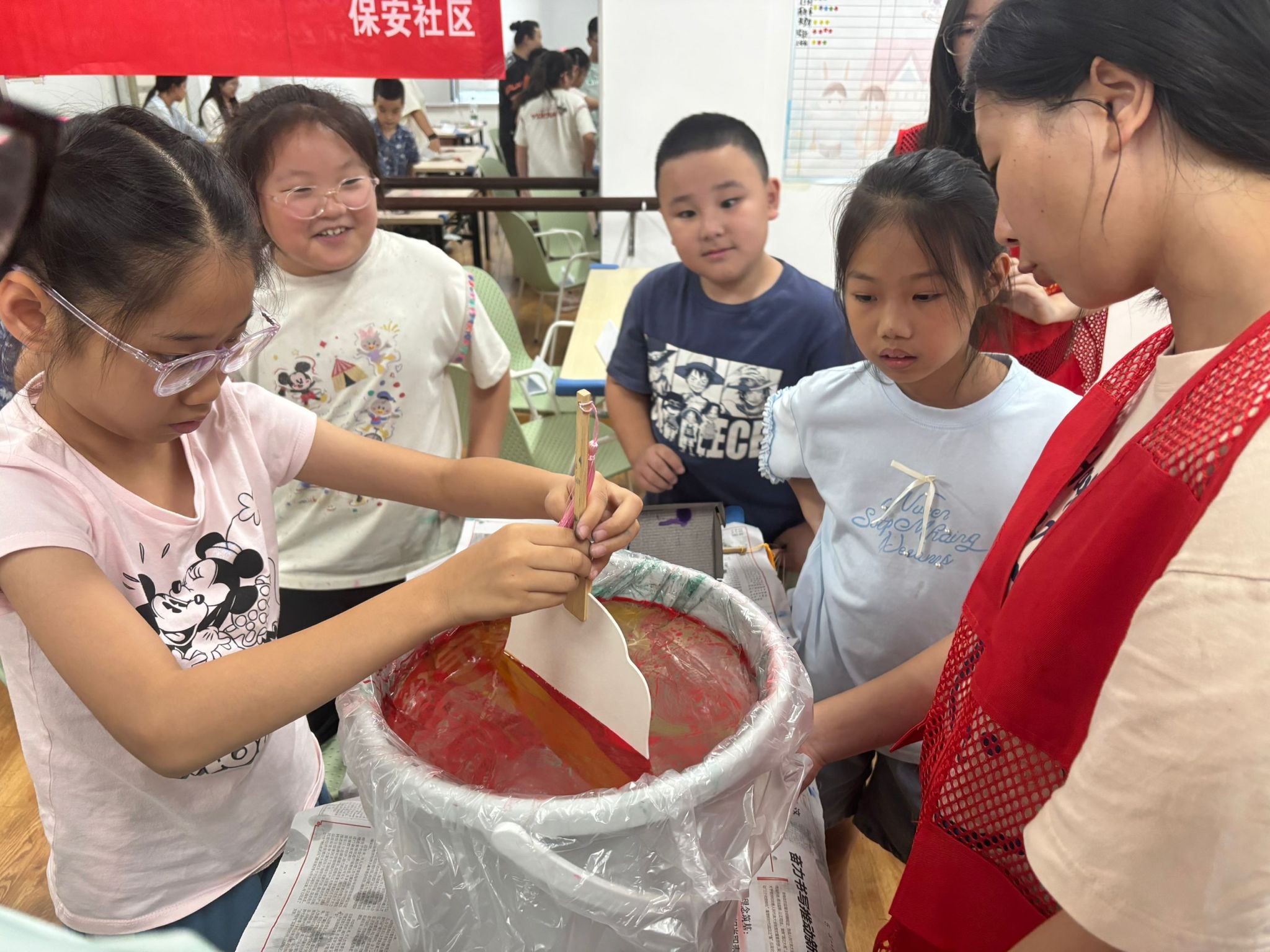 除此之外,队员们还开设了系列手工实践课程,课程内容丰富多彩。风帆车制作探秘科学原理,非遗扎染体验传统工艺,油纸伞绘画挥洒创意,刮画艺术激发想象力,粘土拼字锻炼空间思维。多样课程不仅有效锻炼了孩子们的动手实践能力,更点燃了他们对艺术创作的热情与兴趣。