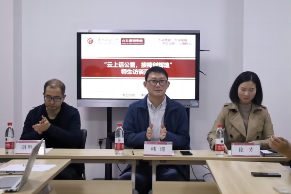 华大青年讯(通讯员 余佳仪 吴纬)11月23日晚,华中师范大学公共管理学院“云上话公管,接棒创辉煌”访谈活动在南湖综合楼9027教室举行。公共管理学院行政管理专业副教授谢胜华,土地资源管理专业副教授韩璟,劳动与社会保障专业副教授徐芳受邀出席。