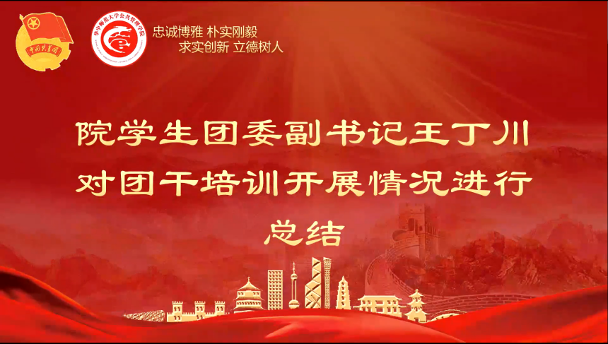 华大青年讯(通讯员 陈克勤 徐珊珊)12月16日晚,华中师范大学公共管理学院团干培训结业典礼于线上举行。出席典礼的嘉宾有院团委书记廖伟、团委副书记张子规、2022级预科生辅导员秦凯琛和学生团委副书记王丁川。2022级院团委学生会全体部委、本科及预科年级学生会和班委会成员参与本次结业典礼,本次典礼由魏圆梦主持。