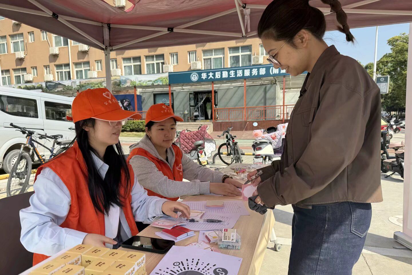 3月22日上午,公管青协成员及第一批志愿者提前在南湖食堂门口集合,清理活动场地,摆放宣传展板并整理现场物品以保障活动的顺利开展。负责人对志愿者进行相关活动的讲解并发放志愿者服装,志愿者们穿戴整齐以热情饱满的姿态投入工作。