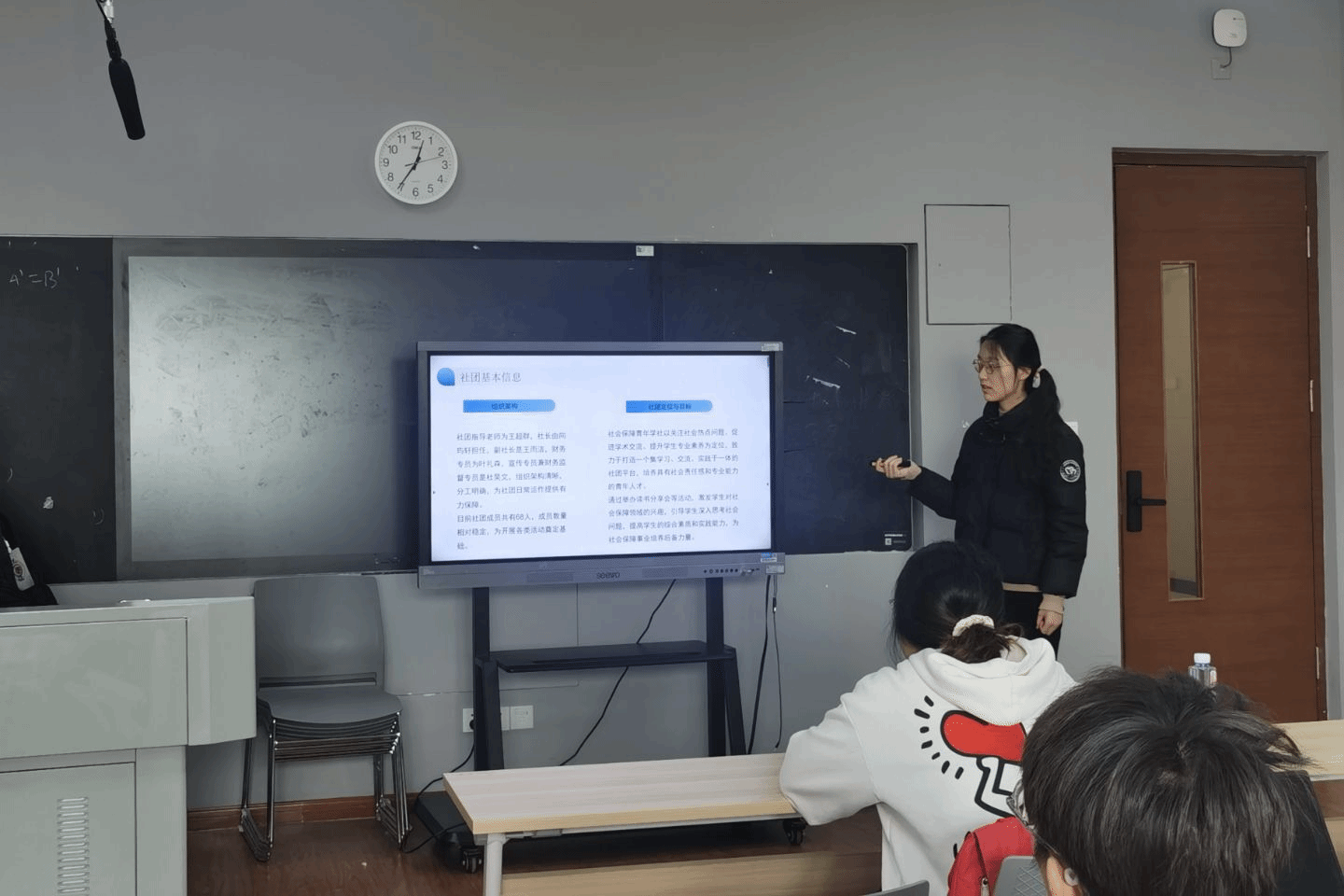 各社团代表依次进行年度工作汇报。社会保障青年学社汇报人向玙轩回顾了过去一年的工作并反思存在的问题,其中包括以“当前社会保障政策在老龄化社会中的适应性”为主题的读书分享会。活动参与人主要来自劳动与社会保障专业,跨专业参与度较低。基于该问题,向玙轩表示未来社团将继续深化社会保障领域研究、开展各类实践活动,以吸引更多专业的同学参与。