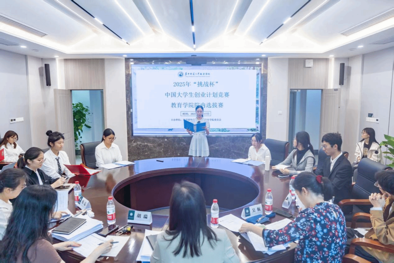 华大青年讯(通讯员 勾良爽 邓渝欣 吴思畅)为营造良好创新创业氛围,助力拔尖创新人才培养,充分对接“挑战杯”赛事,10月17日下午,2025年“挑战杯”中国大学生创业计划竞赛教育学院院内选拔赛于田家炳教育书院403教室举行。教育学院党委副书记王璐,教育史与比较教育研究所教授胡瑞,学前教育系副教授吴航,特殊教育系讲师韩晨,团委书记史磊出席并担任评委。本次活动由2025级本科生吴文溪主持。