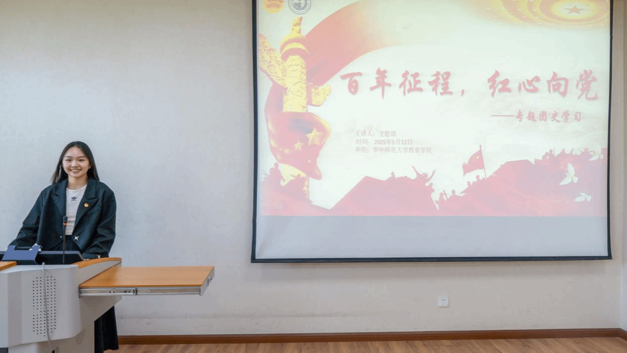 华大青年讯(通讯员 杨宇 姚俊伊)百年征程,红心向党,5月11日下午,教育学院2025年入团积极分子培训班第四讲在田家炳教育书院502室开讲。本次团课由教育学院团委学生会组织部负责人王思琪担任主讲人,以“共青团的光辉历史与时代使命”为主题,为学员们带来一堂思想深刻、内容丰富的团史教育课。