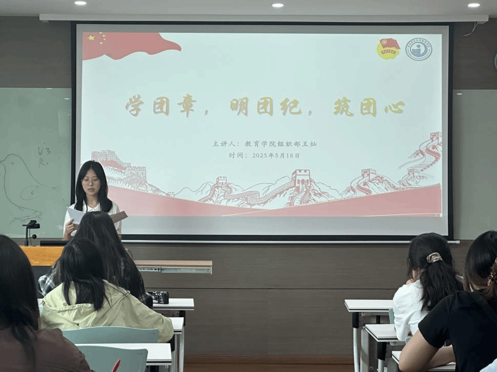 华大青年讯(通讯员 邵佳一 姚俊伊)5月18日下午,教育学院2025年入团积极分子培训班最后一讲在田家炳教育书院 905室举行。本次培训分为学员汇报和团章学习两个环节。由教育学院团委学生会组织部负责人王灿担任团章学习的主讲人,她以“学团章,明团纪,筑团心”为学习主题,阐述了全体共青团员必须遵守的行为准则和根本依据。