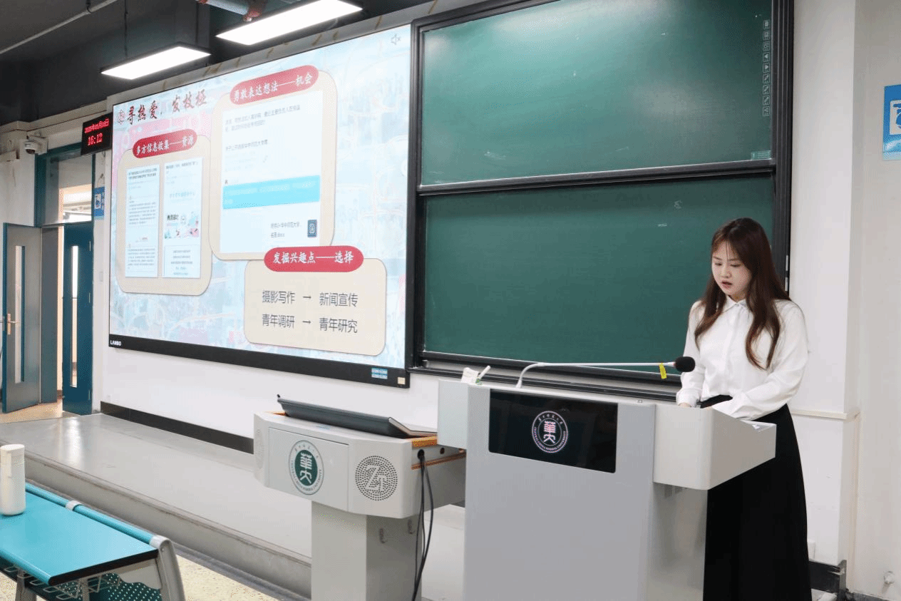 邓潇潇首先向大家介绍了她丰富的实践经历。她曾参与恽代英班赴红安暑期社会实践、“青马红心”实践团暑期社会实践等多项活动,撰写的30余篇新闻稿中,有10余篇被中国青年网、湖北日报等媒体转载,点击量达10万,还荣获“校优秀实践个人”等诸多荣誉。她指出“要寻找自己感兴趣的事,多多尝试”,鼓励教院学子多实践,向下扎根,行稳致远。