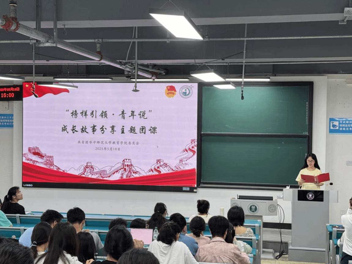 华大青年讯(通讯员 徐思雨 魏银莉)为充分发挥榜样引领作用,激励青年学生成长成才,5月18日下午,教育学院“榜样引领·青年说”成长故事分享主题团课在8号教学楼8310室举办。本次活动由教育学院组织部潘怡宁主持,邀请青年研究中心主任团成员、马克思主义学院恽代英班班长邓潇潇作为主讲人,教育学院一百余名学生参与。