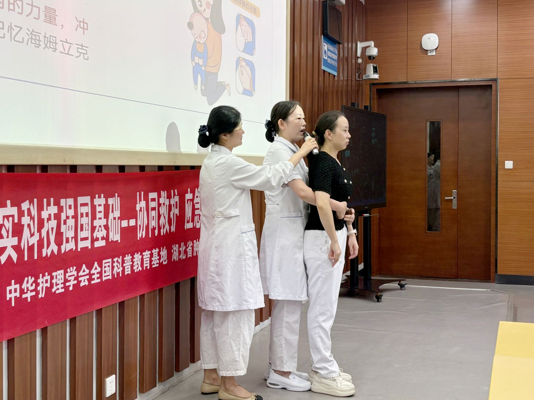 图2 湖北省肿瘤医院医护人员演示海姆立克急救法