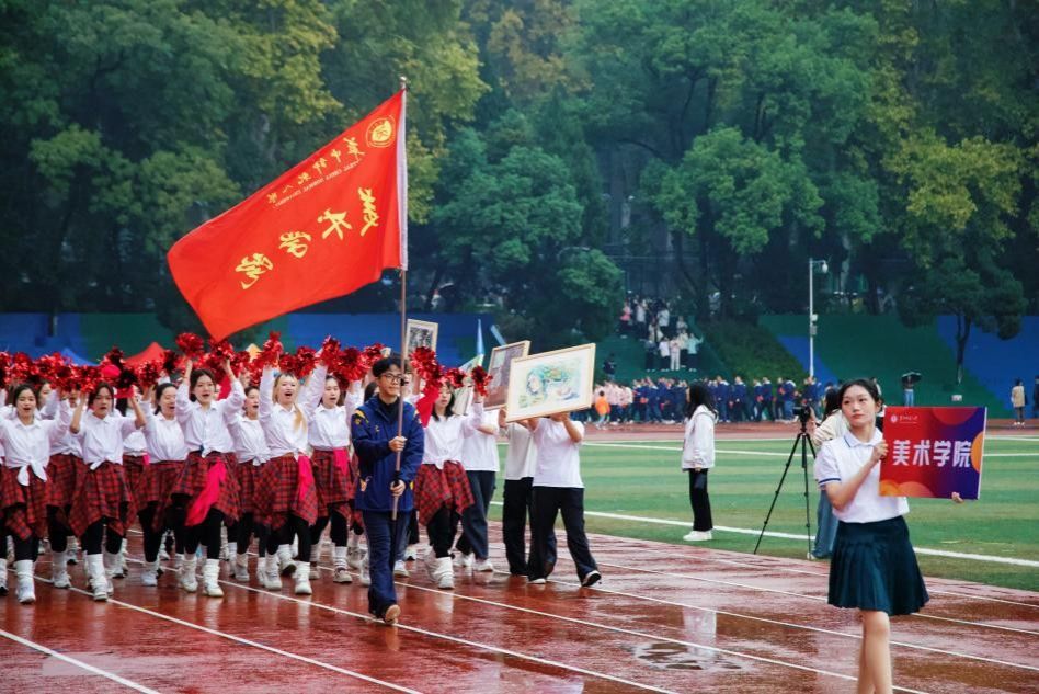华大青年讯(通讯员 王雨涵 苏珊)10月30日,华中师范大学2025年运动会开幕式在佑铭体育场隆重举行。秋风阵阵,丹桂飘香,美术学院(以下简称“美院”)师生齐聚一堂,以昂扬姿态迎接这场融合体育激情与艺术活力的盛会。