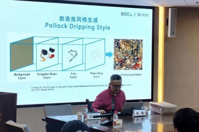 张康教授详细介绍了计算美学在多媒体算法、深度学习、计算机图形学等多个子领域的应用,展示了团队在生成不同艺术风格方面的研究成果。从波洛克的滴画风格到米罗的超现实主义,再到毕加索的立体派风格,计算机通过深度学习算法成功模拟了这些大师的艺术风格,生成了令人惊叹的艺术作品。