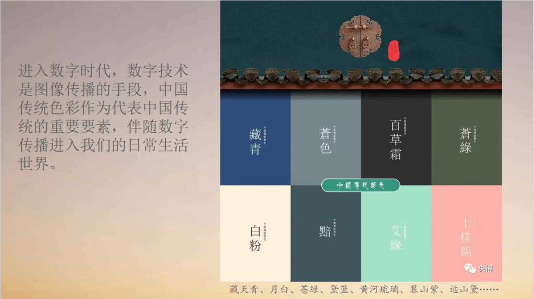 讲座伊始,肖世孟以“藏天青、月白、暮山紫”等一系列充满诗意的中国传统色名引入,指出在数字时代,这些原本深藏于典籍、器物与绘画中的色彩,正通过数字图像、社交媒体与屏幕界面重新进入大众日常生活;但与此同时,算法推送定制着视觉内容,屏幕显色技术改变色彩呈现,社交媒体的“滤镜文化”也在重塑人们对美的标准化认知。