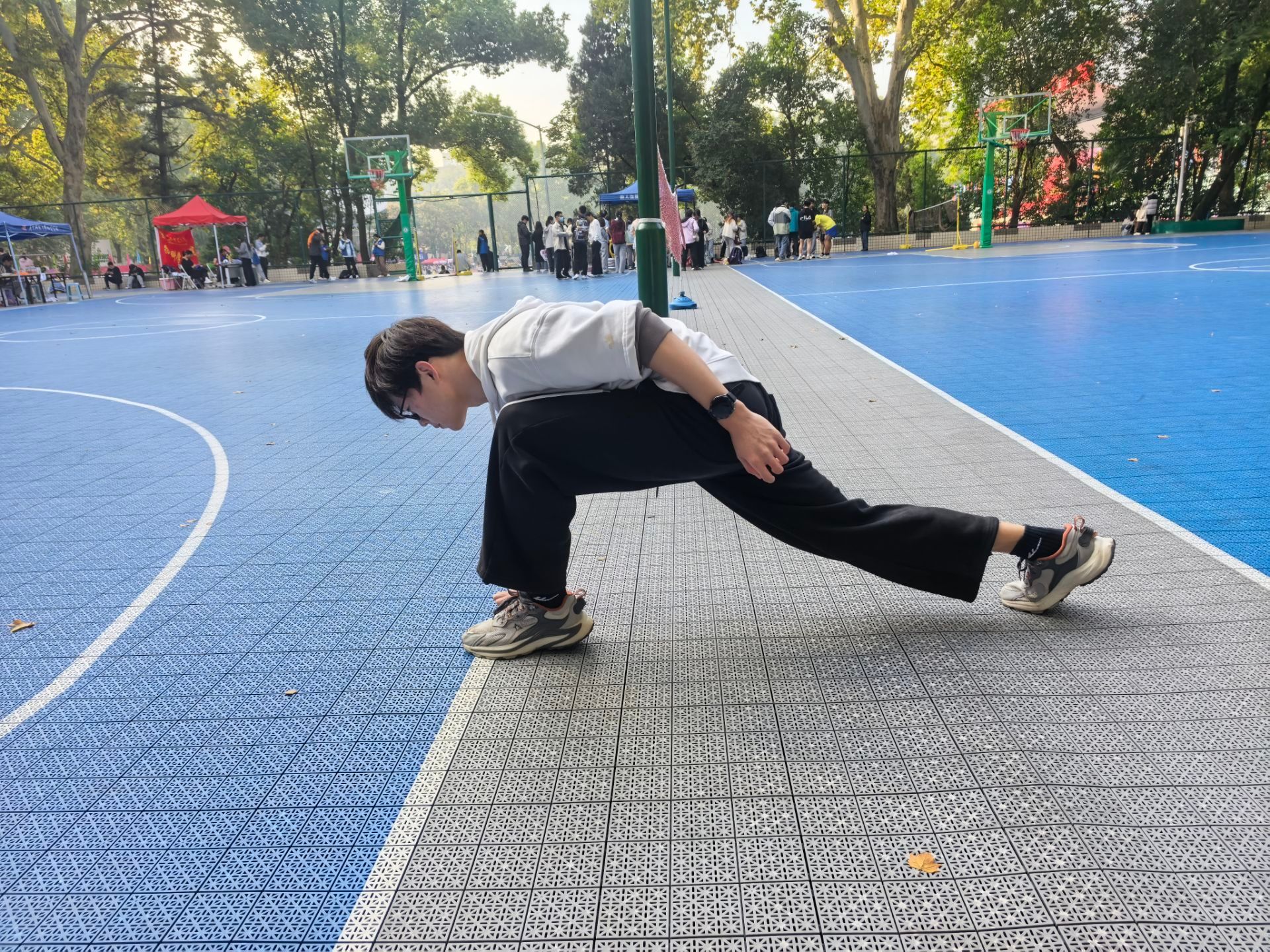 短跑项目是对运动员的综合考验,男子200米不仅要求选手具备出色的爆发力,更需掌握弯道技术与节奏控制能力。面临来自各学院的强劲对手,余正通始终保持沉着冷静,展现出良好的心理素质。赛前准备阶段,余正通提前抵达热身场地,系统地进行压腿、肌肉激活和动态拉伸等专业热身活动。他在接受采访时表示:“充分的热身是预防运动损伤、确保最佳状态的基础,而保持平常心则是稳定发挥的关键。”