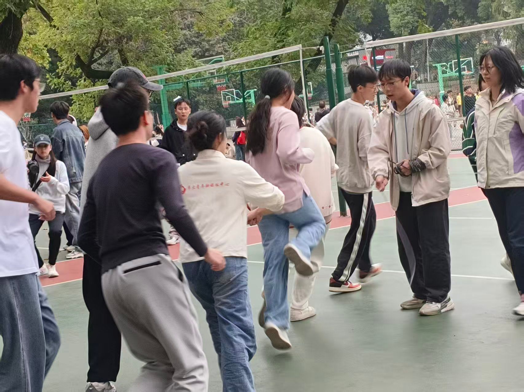 下午的跳绳比赛现场气氛热烈。赛前,生命科学学院十名队员有序进行训练,在试跳过程中不断调整节奏、互相鼓励,展现出良好的团队氛围。比赛开始后,队员们跟随长绳摆动的节奏依次跃入,起跳整齐、落地稳健,动作流畅自然。现场观众的呐喊声与绳子击地的节拍相互呼应,将比赛气氛推向高潮。最终,团队以166次的成绩获得全校第九名,体现了队员们平时刻苦训练的成果和赛场上的默契配合。