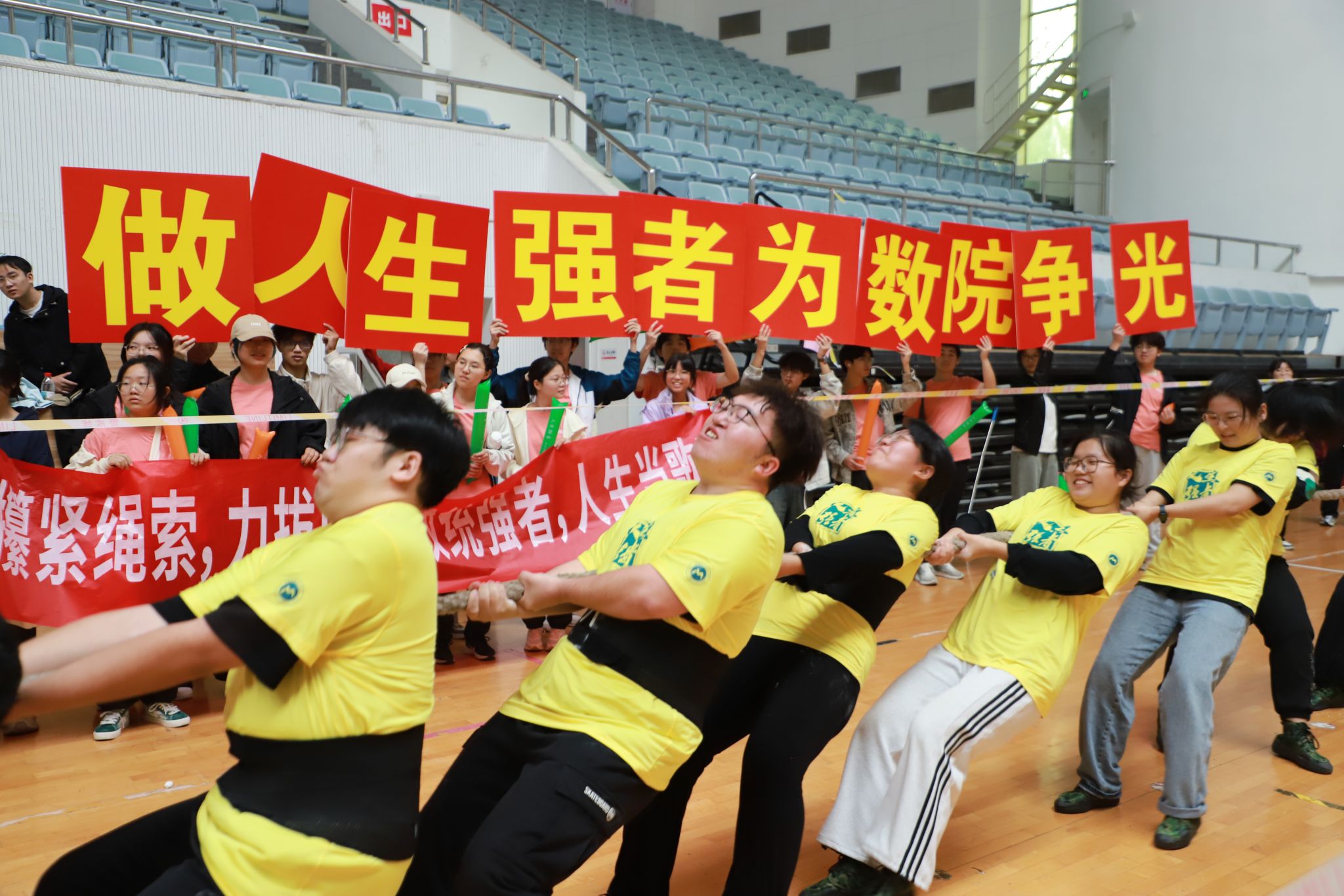 数统健儿们在拔河比赛中不仅展示了拔河队伍实力和风采,更展现了积极向上、勇于拼搏的精神面貌,诠释“做人生强者”的真正含义,并将“团结、务实、进取”的学院精神转化为不断前行的精神动力,激励着每一位数统学子“麦”力前行。