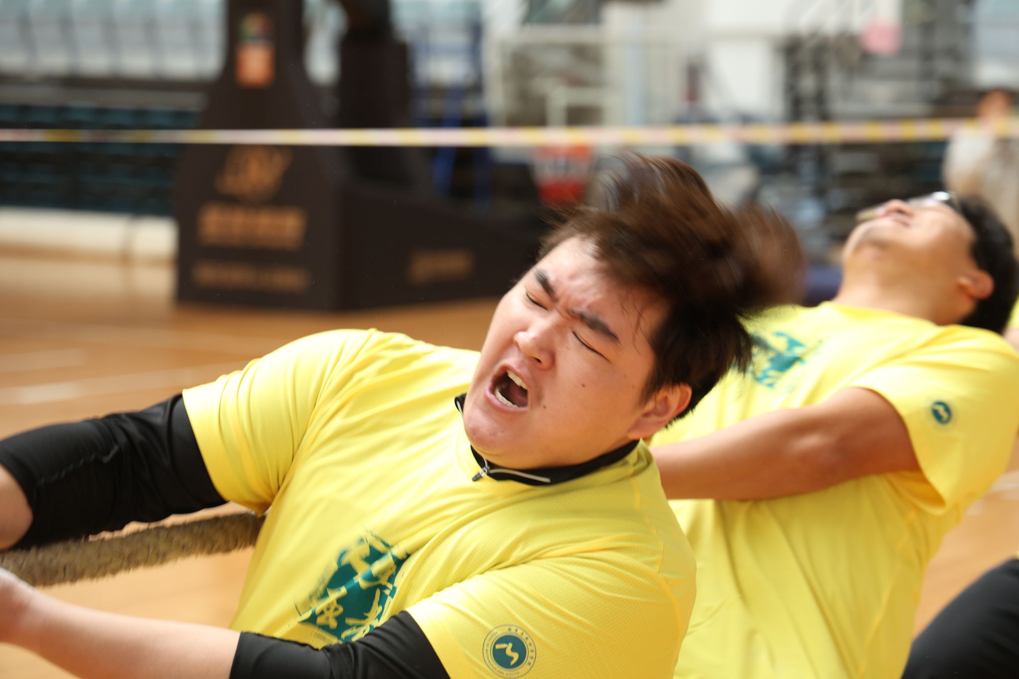 同日下午,数统学院与马克思主义学院进行第七轮拔河比赛。赛前准备阶段,数统运动员们的双手撒满镁粉,互相加油鼓劲。比赛开始,李靖鹏高声喊出口号,让数统选手们时刻保持紧张状态,并提醒全体上场队员要稳扎稳打、协作发力。全体运动员的默契配合充分展现数统学院的团队竞技水平和协作能力。最后,数统学院以2:0的成绩结束第七轮拔河比赛,成功进入决赛。