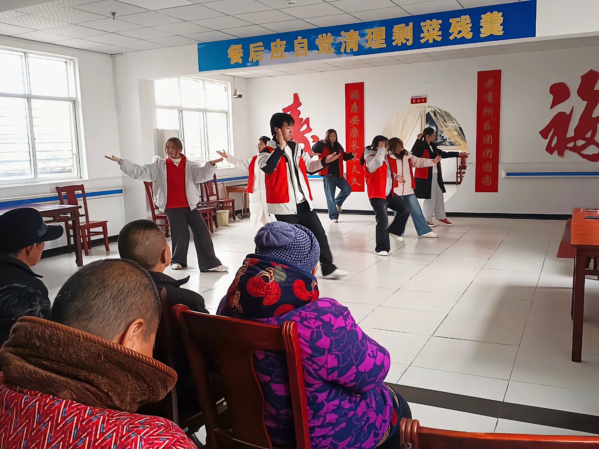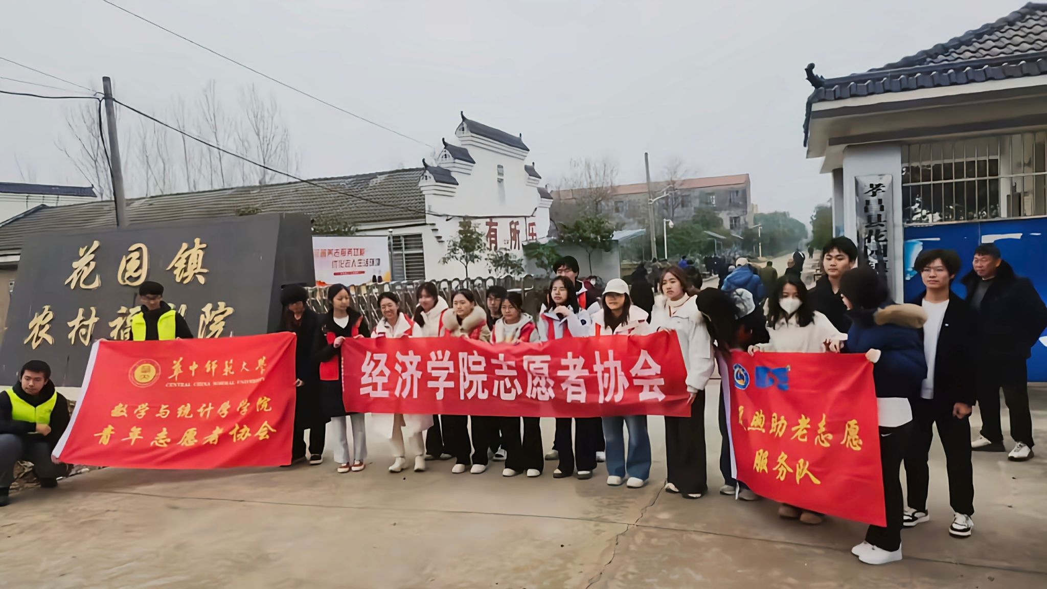 华大青年讯(通讯员 黄金彪 袁富丁 冉紫涵)为传递敬老温情,驱散冬日寒意,12月20日,由中南财经政法大学经济学院志愿者协会(以下简称“经院志协”)主办,华中师范大学数学与统计学学院青年志愿者协会(以下简称“数统青协”)、武汉理工大学暖煦助老志愿服务队联合协办的助老志愿服务活动在孝感市花园镇农村福利院开展。三校志愿者们以实际行动践行敬老爱老的传统美德,为院内老人送上冬日的温暖与欢乐,用青春力量绘就一幅温暖的志愿画卷。