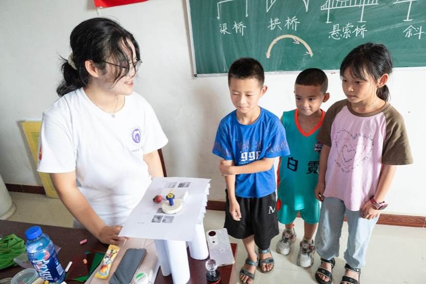 华大青年讯(通讯员 李辉煌 张謇 田杰聪)为激发乡村青少年对科学的兴趣,拓展他们认识世界的方式,7月10日至17日,华中师范大学外国语学院心火支教团白霓队(以下简称“白霓队”)队员张謇在湖北省咸宁市崇阳县白霓镇洪泉村支教点开设“智启未来”系列课程,带领学生了解天文地理、光声力学等趣味科学知识。