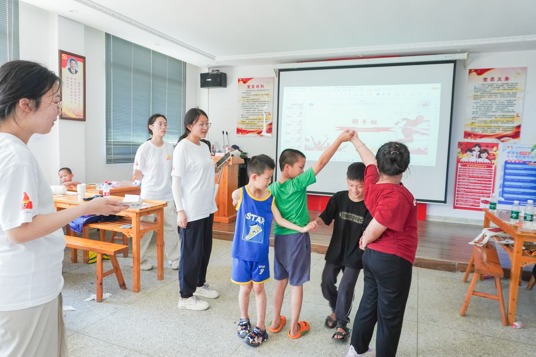 华大青年讯(通讯员 贾一翀 李辉煌 田杰聪)为落实“五育并举”具体要求,加强青少年体育工作,推动校园文化建设,以史育人、以体育人,深入学习革命先辈艰苦奋斗的精神,7月15日与19日上午,华中师范大学外国语学院心火支教团白霓队(以下简称“白霓队”)在湖北省咸宁市崇阳县白霓镇大市村、洪泉村分别开展“红心向党,素质共拓”主题趣味运动会。大市村、洪泉村全体学员,白霓队全体队员参与活动。白霓队队员孙盈盈、余俊岚主持活动。