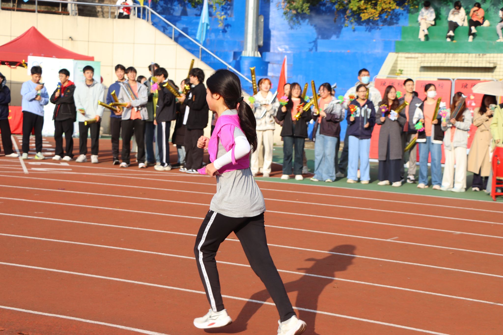 在文体中心工作者的带领下,选手们有序来到检录处准备比赛。同时,在不远处的活动中心,同学们的呐喊不绝于耳,为即将上场的同学加油鼓劲。发令枪划过长空,征程伊始。选手们以科学有效的方式分配体能,脚步沉稳有力,节奏分明。加油团同学们的击鼓声与选手的脚步相呼应,成为最美的伴奏。在跨越终点线的一刻,每位选手都是外院的骄傲,每个背影都是操场上最美的风景,更将“阳光外院,活力无限”的口号付诸实际行动中。