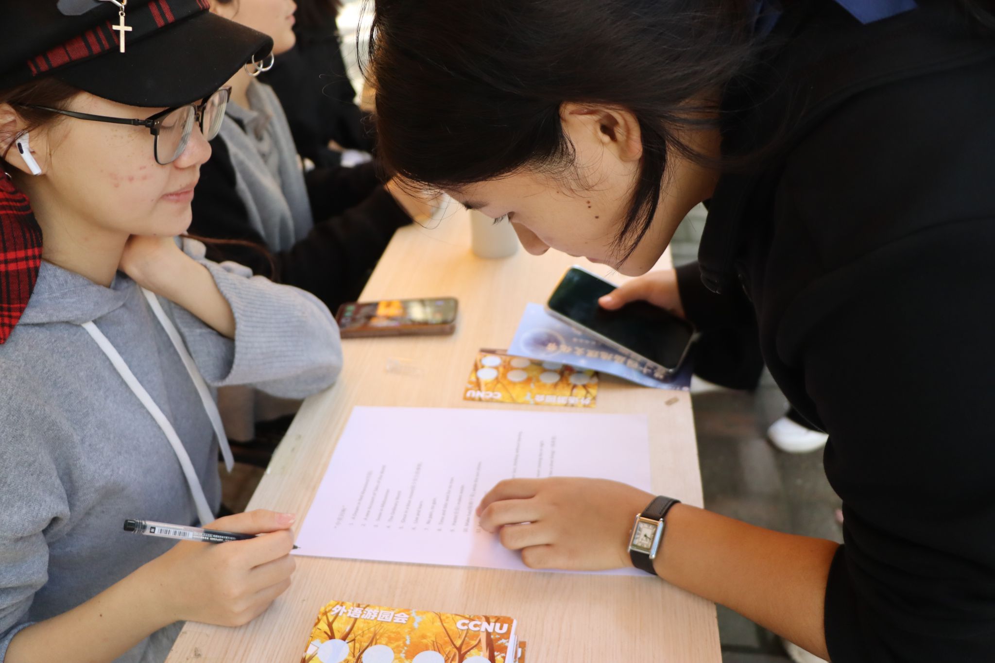 华大青年讯(通讯员 葛思言 刘曼彤)11月15日,外国语学院(以下简称“外院”)于东区小树林举办“秋韵和声,语汇中西”外语游园会,活动通过多样化的外语文化体验项目,寓教于乐,旨在让学生感受语言魅力,拓展文化视野,加深对中外文化的理解。
