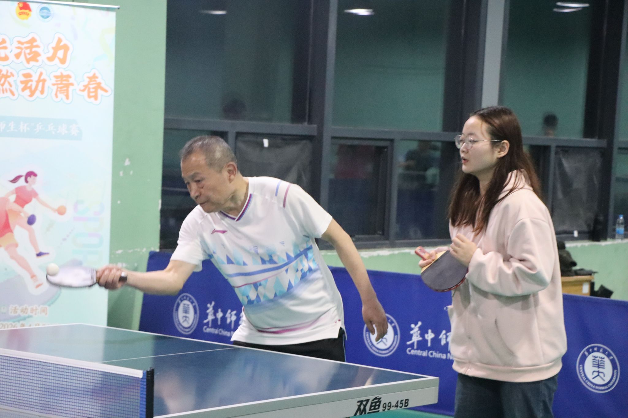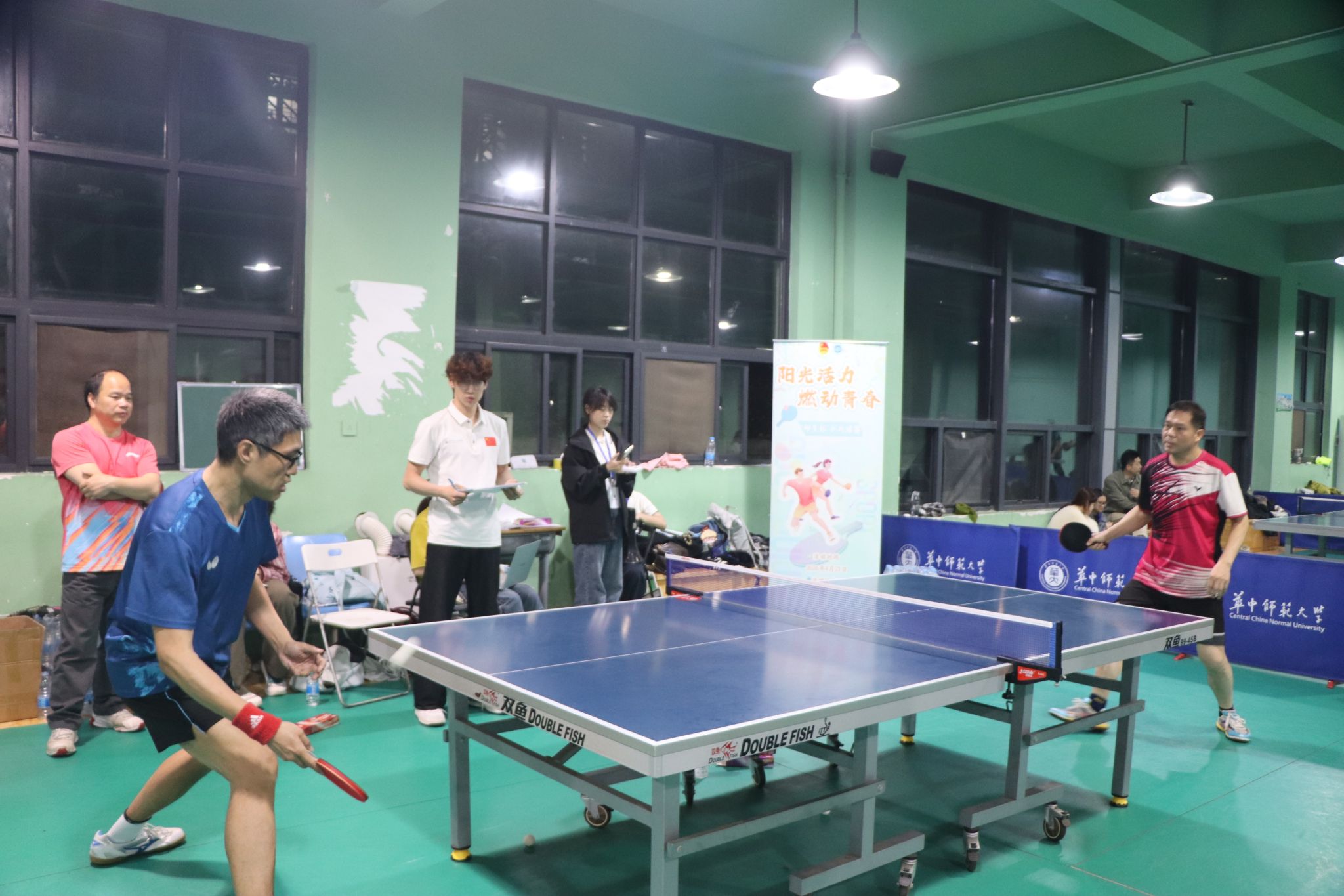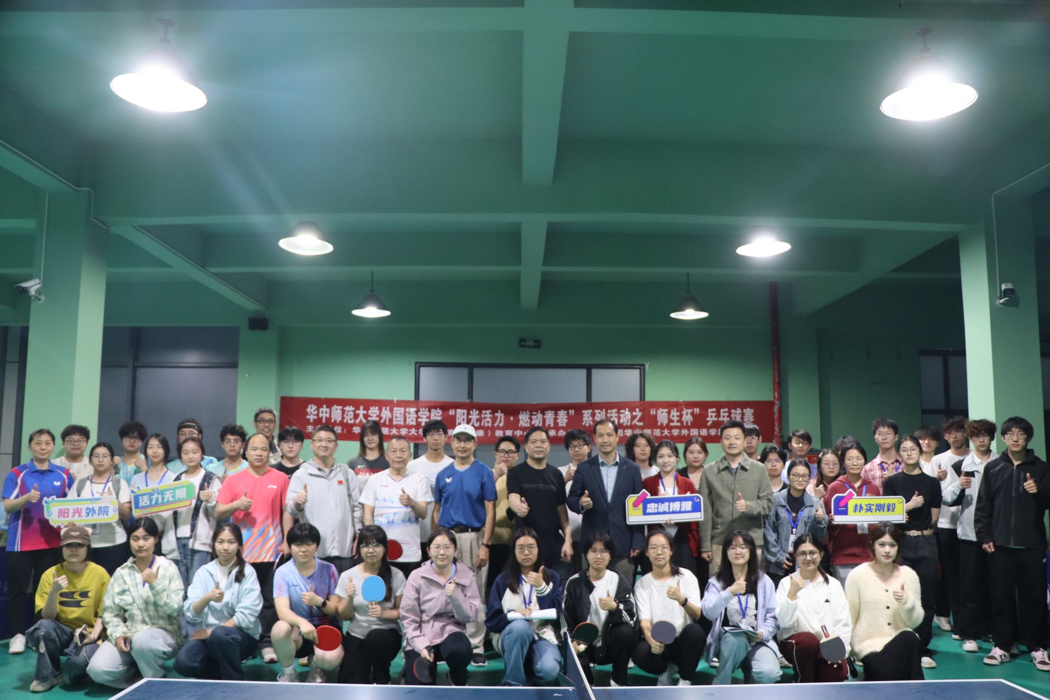 华大青年讯(通讯员 葛思言 迪丽努尔)为丰富师生课余文化生活,搭建师生交流平台,4月21日,华中师范大学外国语学院 (以下简称“外院”)开展“阳光活力・燃动青春” 系列活动之师生杯乒乓球。外院党委副书记罗舰、副院长曹彬、工会主席何卫华、英语系系主任方幸福、团委书记吴波等出席活动。近四十位教师代表与学生选手同台竞技。学生会文体中心顾家仪担任比赛主持人。