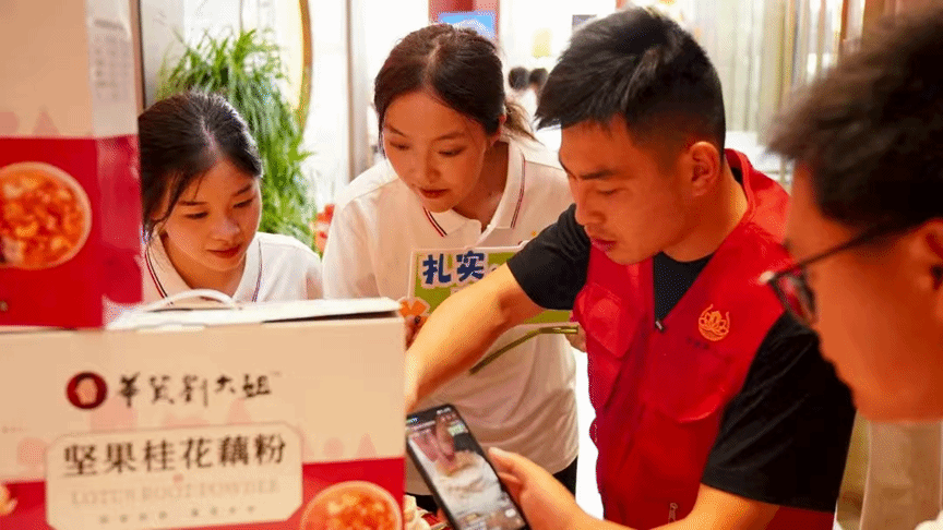 团队精准对焦蔡甸莲藕产业发展的关键痛点,打造“藕遇好物”“藕像视界”等特色产品,有力推动实现商业价值与社会效益的双赢。“藕遇好物”公益助农直播走进十里莲华养心谷藕塘,聚焦蔡甸莲藕及农产品,充分发挥文学专业优势,向网友生动阐释蔡甸莲藕所承载的文化底蕴。