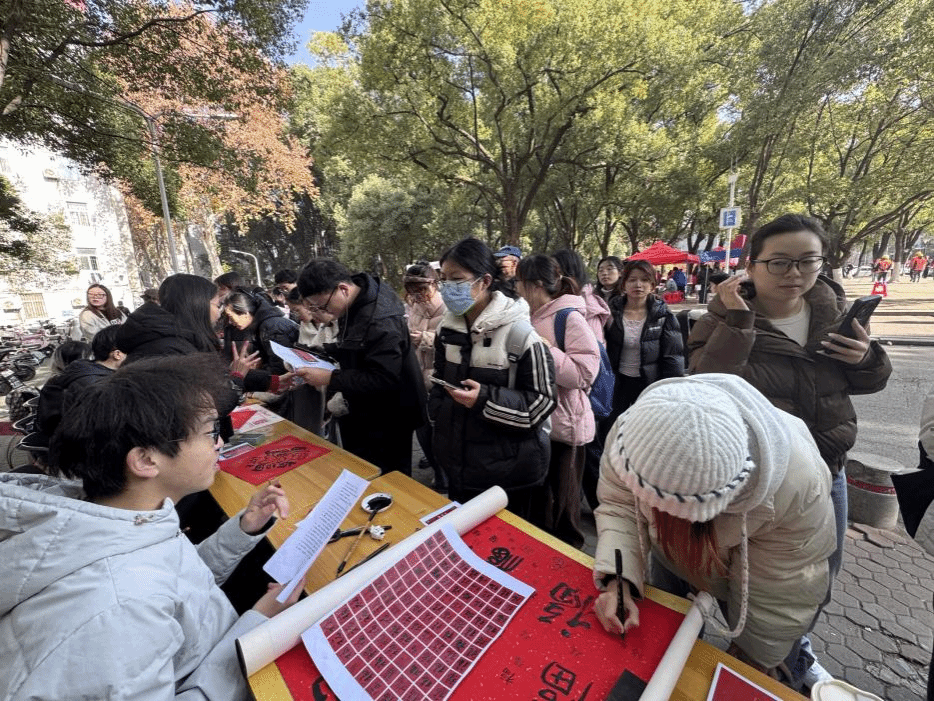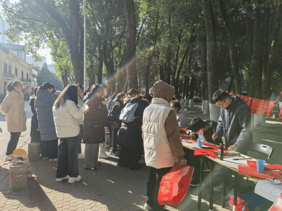 华大青年讯(通讯员 杨晨露 彭禺玥 赵庆元)12月14日上午,由文学院团委、文学院南湖书画协会主办的第十三届“送春联”活动在华中师范大学东区小树林启幕。作为学校一项延续多年的传承中华优秀传统文化的品牌活动,本次活动串联传统民俗与校园温情,为师生带来了浓厚的新春气息。