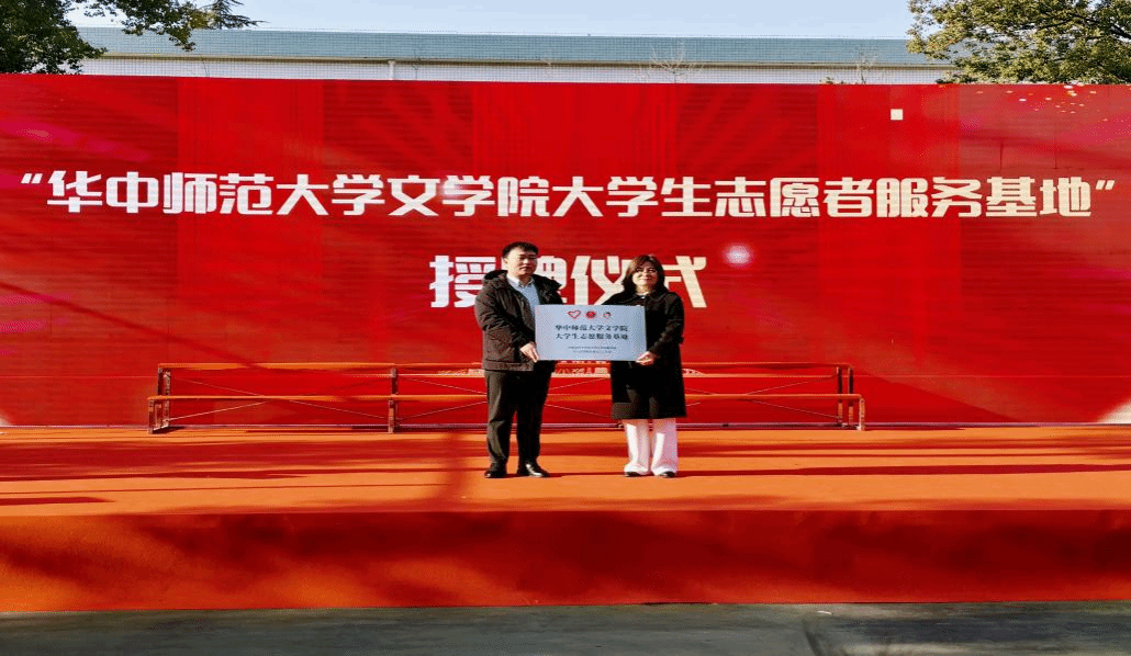 活动中,文学院团委书记崔宏博与七二二社区党委书记严悌芳共同为华中师范大学文学院大学生志愿服务基地揭牌,标志着院地合作迈向新阶段。