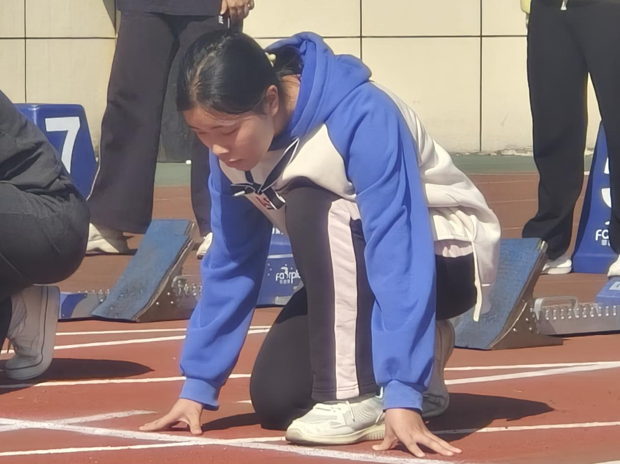 比赛现场人声鼎沸,气氛紧张热烈。女子100米运动员陈钰茜迅速投入比赛,她积极进行着压腿、拉伸、尝试起跑等赛前准备,调整身体状态,缓解紧张的情绪,争取以最佳的状态起跑。随着发令枪枪声的响起,陈钰茜向着终点冲刺,丝毫不露畏惧神色,以自己的实际行动阐释了“巾帼不让须眉”的含义。