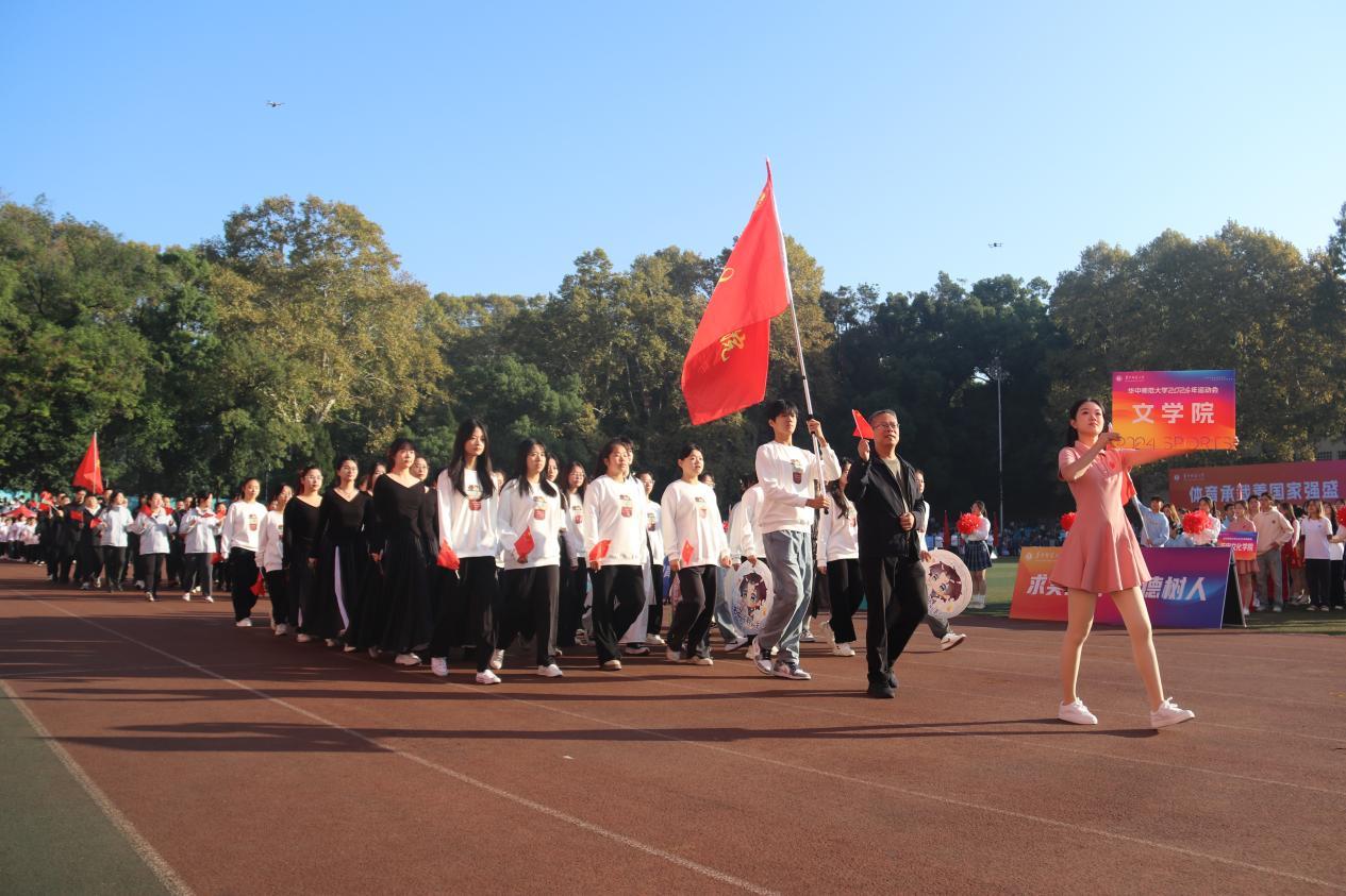 华大青年讯(通讯员 何阳雅颂 洪亚琳)10月31日上午,晴空万里,华中师范大学迎来了秋季运动会开幕式。文学院(以下简称“文院”)方阵以其独特的文化韵味和青春活力,成为了开幕式上一道亮丽的风景线。