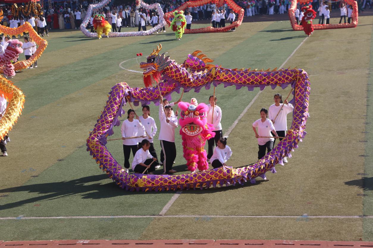 舞龙队伍登场,队员们默契配合,用龙身摆出一个个亮眼的造型。龙身蜿蜒起伏,时而腾空跃起,时而盘旋下降,将龙的灵动与威严展现得淋漓尽致。仿佛真的有一条巨龙在桂子山间翱翔,引得观众们阵阵惊叹。雄狮则由两位表演者合作演绎,一人舞狮头,一人舞狮尾,他们动作协调,将狮子的勇猛与可爱完美融合。狮子时而跳跃,时而摇头摆尾,栩栩如生,赢得了现场观众的热烈掌声。龙跃狮舞,充分彰显了文院学子的蓬勃意气与昂扬风貌。
