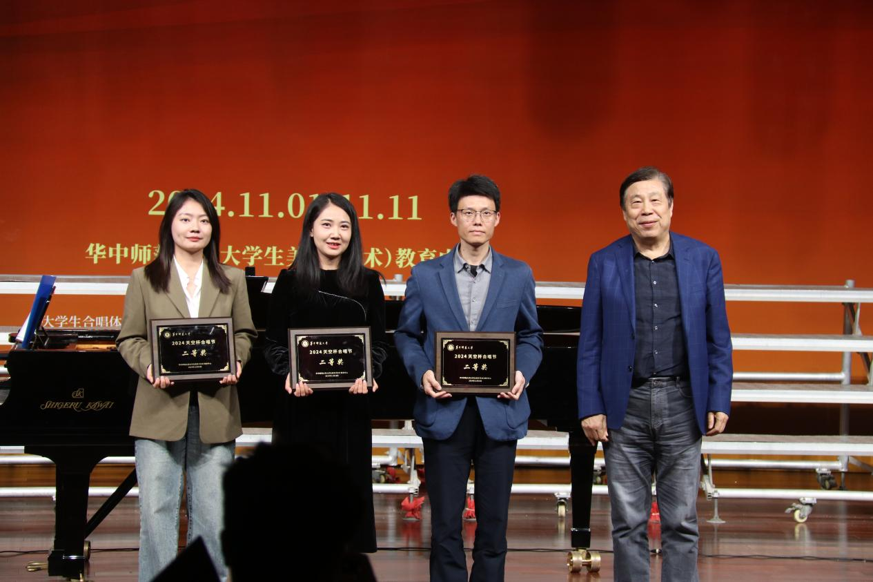 华大青年讯 (通讯员 罗丽莎 范如冰 宁静波 洪亚琳 潘叶)11月10日,第二届“天空杯”合唱节决赛在音乐厅举行。本次比赛由华中师范大学大学生美育(艺术)教育中心举办。文学院党委副书记桂文亮、2024级本科生辅导员叶政通前往观赛。本次决赛,文学院获二等奖和优秀组织奖,指挥员吴书奇获最佳学生指挥奖。