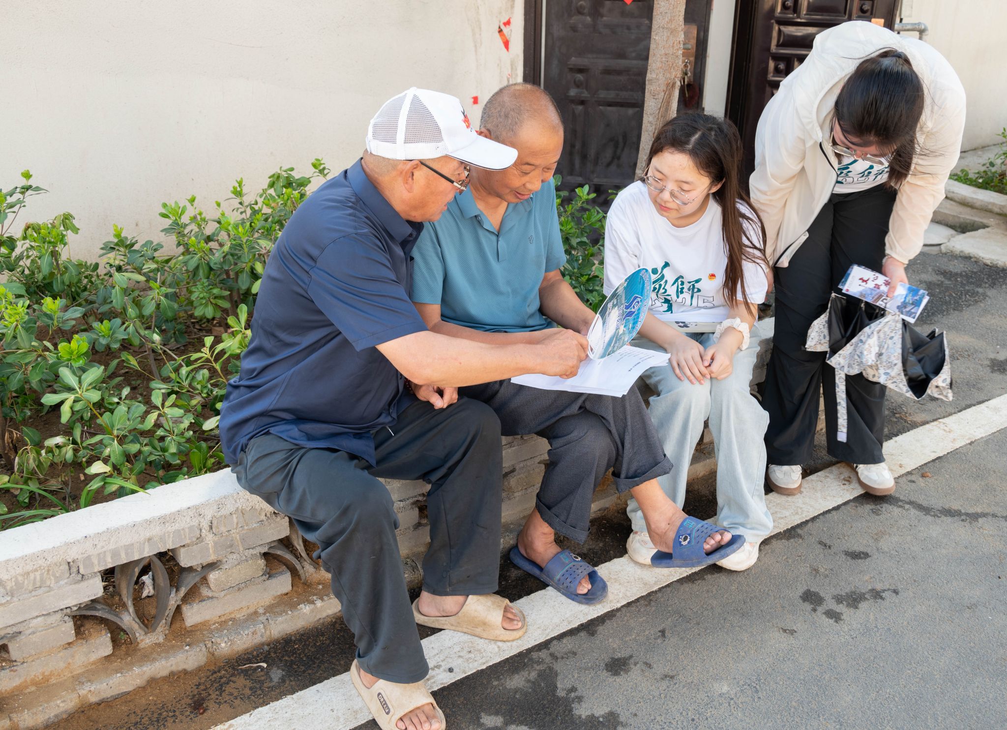 图4:“文心筑梦”实践队在蔡湾村进行推普调研