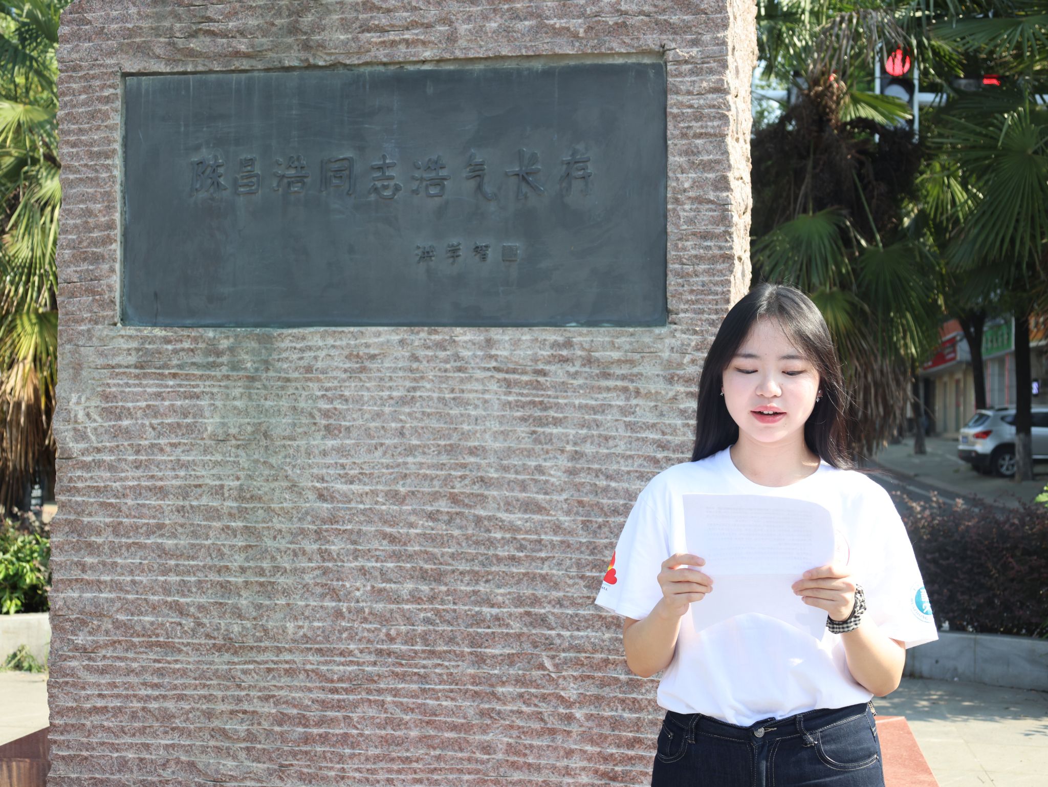 实践队成员徐雨欣深情讲述了陈昌浩同志的革命事迹。陈昌浩在战争年代,不畏艰险,不怕牺牲,英勇斗争;新中国成立后,他投身于马列主义经典著作编译工作,为马克思主义理论建设做出积极贡献。
