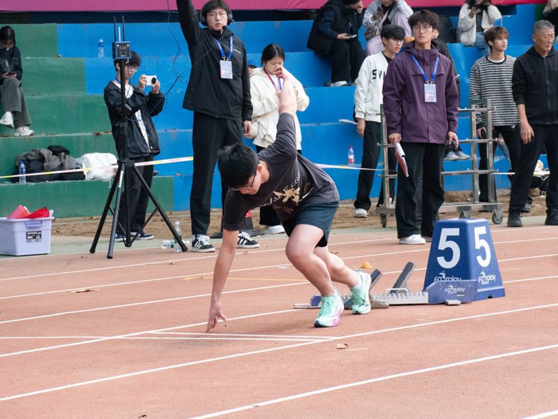 起跑线上,信管健儿以蹲踞式蓄势待发。不同于长跑的持久战,这是一场在弯道与直道间寻求最优解的速度竞赛。进入百米直道后,选手们将在弯道积蓄的动能彻底释放,步频达到巅峰,双臂以最大幅度摆动,每一个动作都在挑战身体的极限。这场短暂的极速较量,不仅考验着爆发力,更展现了在高速状态下保持技术动作的精准控制。信管健儿用这短短的几十秒,诠释了何为“在有限距离内创造无限可能”的箴言。