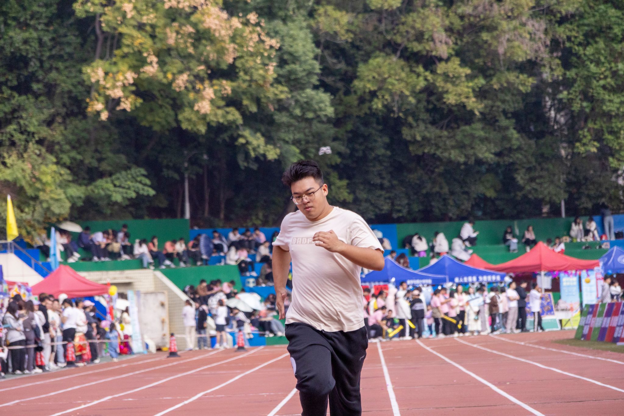 华大青年讯(通讯员 丁浩哲)10月31日,男子200米比赛在佑铭体育场如期举行。李泓锐是政治与国际关系学院(以下简称“政国院”)2025级本科生。在此次运动会上,他参与到200米短跑项目中,凭借着执着的信念和顽强的韧劲为政国院取得了优异的成绩。