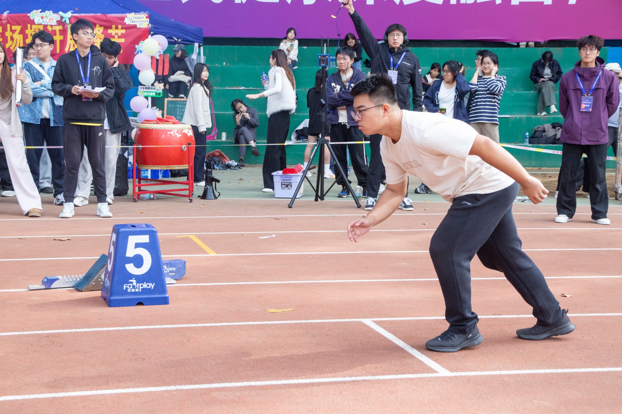 为什么要参与这次比赛?李泓锐表示,他当初其实并没有想太多,因为学院有需要,自己就报名了。这份为学院争光的初心也是在赛场上支撑他奋勇争先的重要动力之一,因而他得以在田径赛道上大放异彩,创造佳绩。