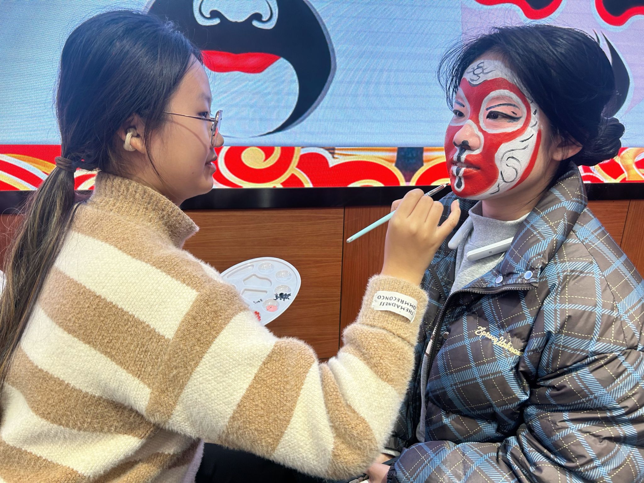 华大青年讯(通讯员 吴语涵)2025年11月26日晚,“脸谱雅韵入校园”活动在文华公书林四楼模拟联合国实验室展开。本次活动由共青团华中师范大学政治与国际关系学院(简称:政国院)委员会主办,由华中师范大学华韵京剧社(学生)与政国院团委社团管理部承办,通过三项趣味活动展现京剧魅力,对京剧感兴趣的同学齐聚一堂,共赏脸谱雅韵,共绘京剧风华。