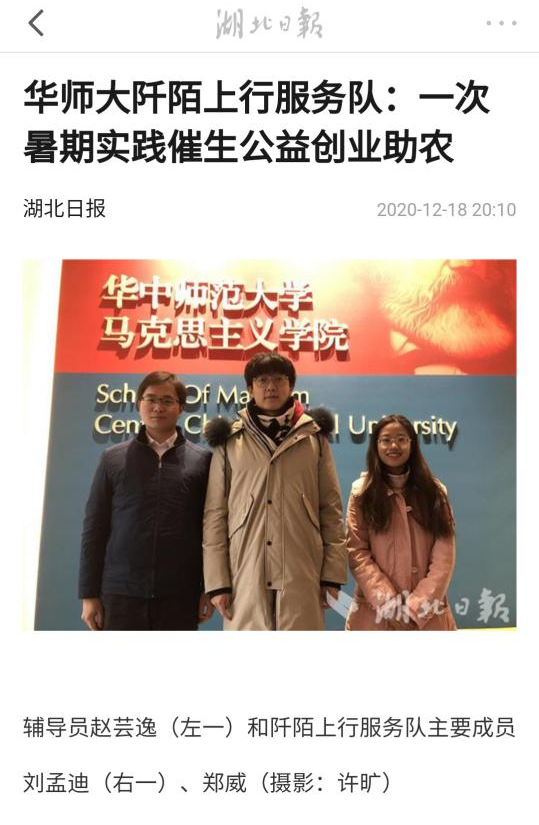 曾经郑威也问过自己,作为一名将来要当老师的师范生,为什么要做这些看起来和自己的未来职业“毫不相干”的事情,付出的时间与精力都值得么?他每次给自己的答案都是——初心。只要初心不变,那么任何付出都是有价值的。2021年,郑威以第一名的成绩顺利签约河南省重点中学许昌高级中学,他和阡陌的故事不再局限于校园,而是迈向了更广阔的舞台。 第五届中国青年志愿服务项目大赛金奖、第四届中国青年志愿服务项目大赛银奖、湖北向上向善好青年、第五届全国大学生志愿项目大赛公益创业赛省级金奖、2018年湖北省暑期社会实践优秀团队、全国大学生创新创业训练计划国家级A类项目、2020年武汉市第三届优秀志愿服务项目推选十优项目、2020年武汉市“新青年下乡”活动十佳项目、洪山区大学生志愿服务公益项目大赛团队十佳项目等等奖项是对他的认可和鞭策,而时常收到的抗战老兵家人和三农自媒体人的问候是对他最大的肯定。